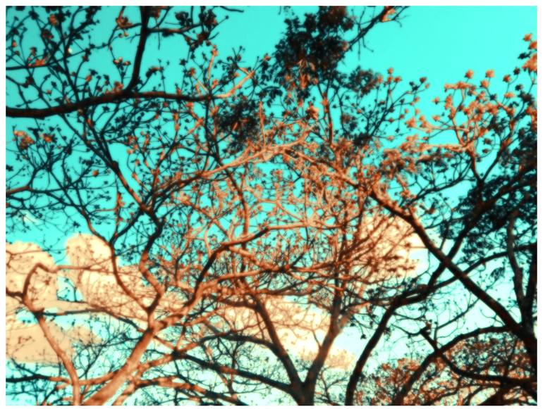 This is a photograph of trees on a blue afternoons6This is a photograph of trees on a blue afternoon, where you can see their natural process of changing leaves and blooming again. Branches, flowers, and small leaves in full growth are seen at the end of a sunny day with few clouds. With some light ...