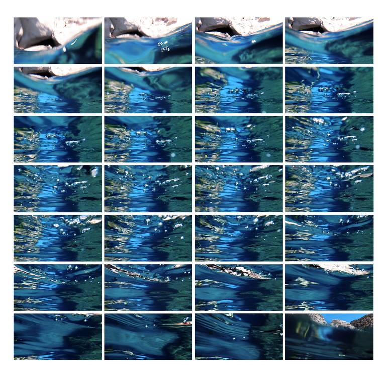Image series of water in the moment of diving into it. Shot in the Mediterranean Sea. Other size available: 5 x 117,5 x 120 cm Printed on Hahnemühle Photorag Baryta, signed on the verso, separate label and certificate.
