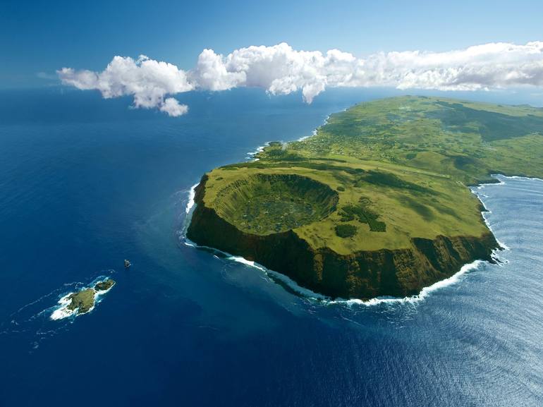 A flight over Easter Islaand is simply stunning, because of the spectacular Volcano Rano Kau. From above the green island shows that it´s landscape is fantastic!