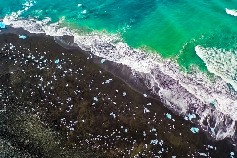 Aerial view of famous place in Southern Iceland Diamond Beach Northern Europe