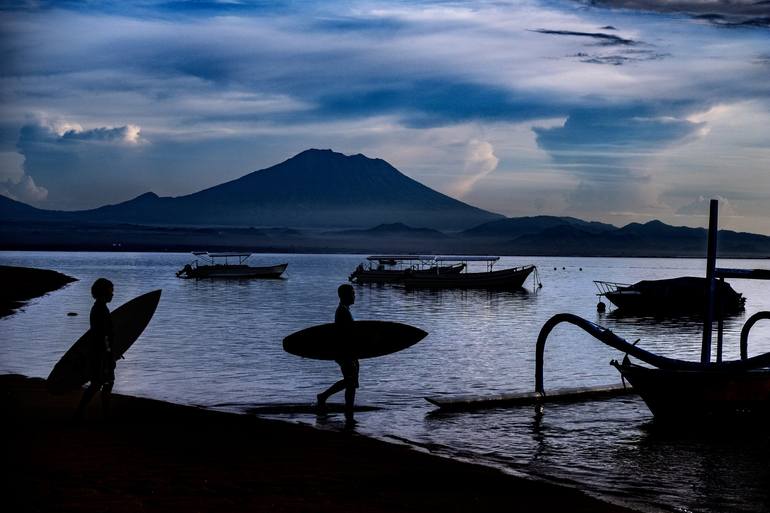 The monsoon is a capricious time in Bali, it can be grey, overcast and raining, then suddenly the sky breaks open in visual drama of clouds and colours. The night before I had stayed near the beach. I wandered down early, and had a long lens with me just in case the volcano was visible. Just as I go...