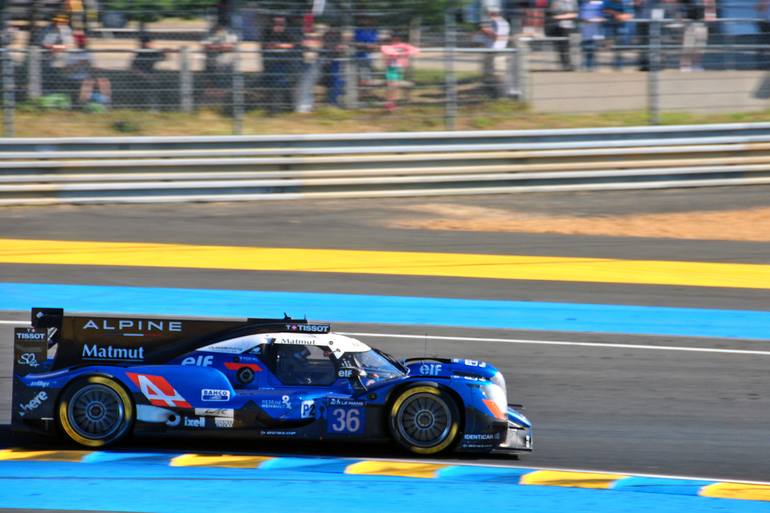 Signatech Alpine Matmut racing an Alpine A470-Gibson no36 at the 24 Hours of Le mans endurance race 2017 in France photography by Andy Evans Photos. Limited edition prints are processed using Hahnemuhle Baryta fine art paper. A bright white based, acid-free and lignin-free paper benefiting from a hi...