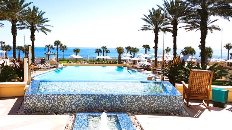 This image reflects a great view on Amelia Island in Florida. The fountain leading to the Pool with an Ocean view between the Palm Trees. If purchased this image on 17" x 11" canvas, I will sign and number the image prior to shipping it to you. If you prefer this image on photo paper, matted and ...