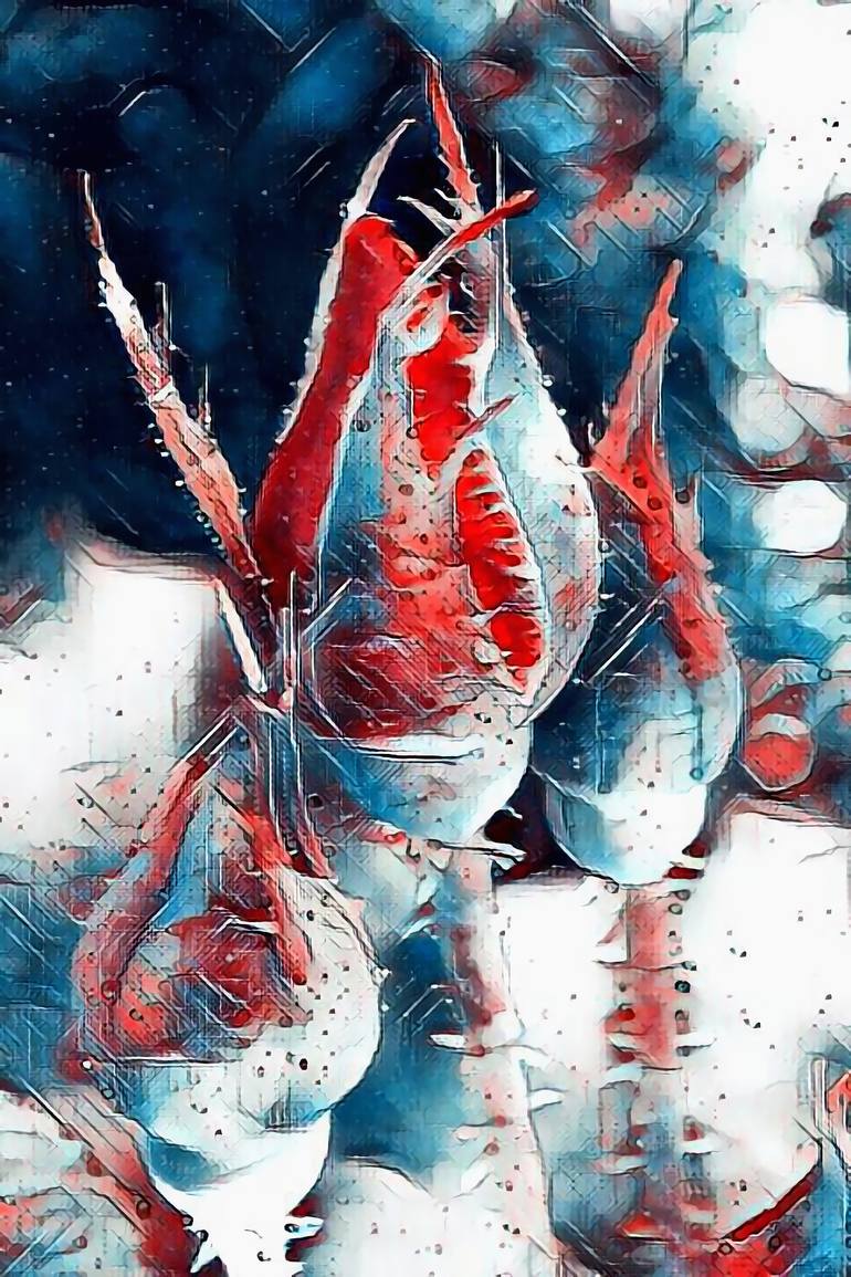 Artificial neural network painting. Artificial intelligence painting Rose buds in red and blue digital style. Abstract artistic art print. Abstract artistic digital artwork 2019. Scandinavian printable wall art.