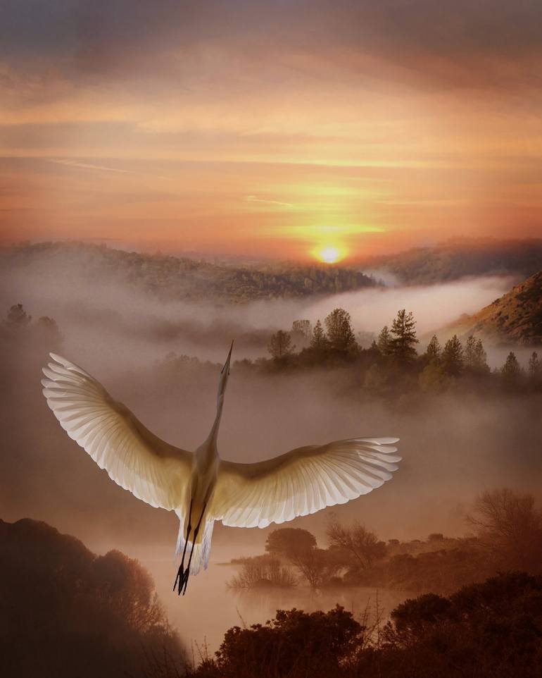 I love where I live. Laks, lagoons, creeks...all attract the cranes/egrets. such beautiful elegant birds. I wait for hours to get the best images of them. This is a composite with 5 different images I took to put together for an art piece. Ihope you like it!