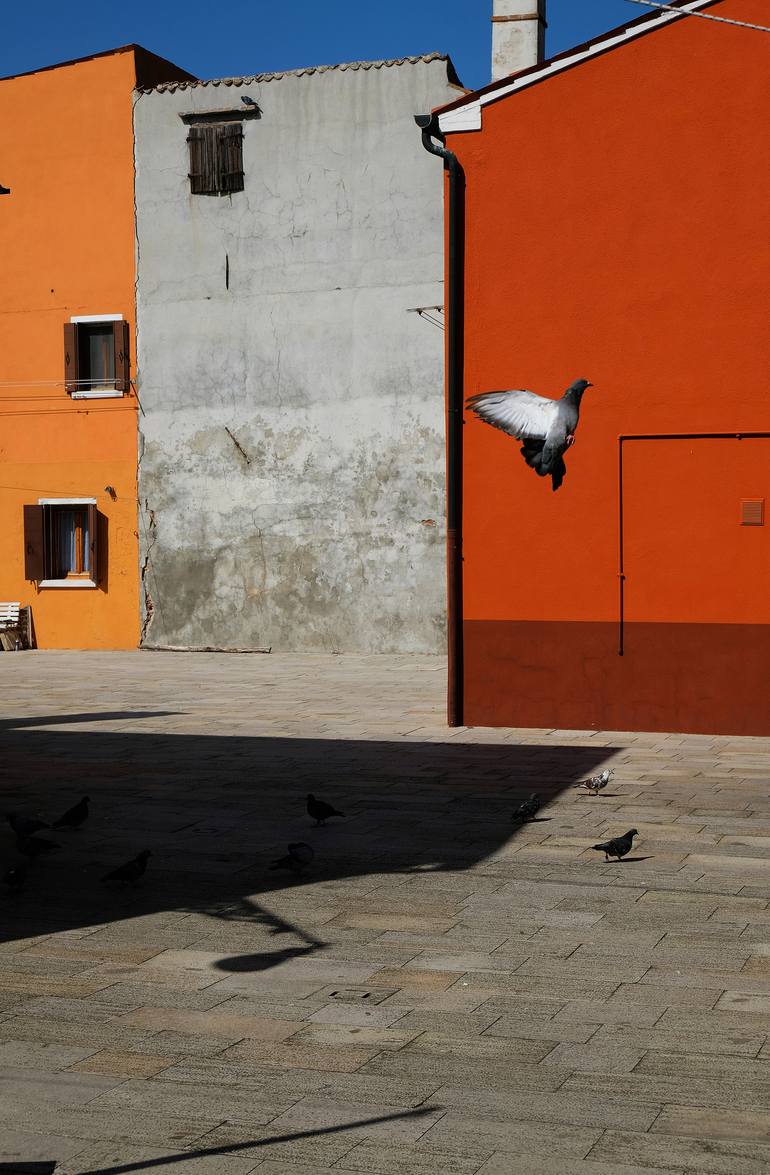 Colors and shadows intersect in the small alleys of the island of Burano. Geometries and contrasts create surreal sensations broken only by the passage of some human being. Strong, long and dark, the shadows hit the bright colors of the lagoon houses. Everything is transformed as if by magic and wit...