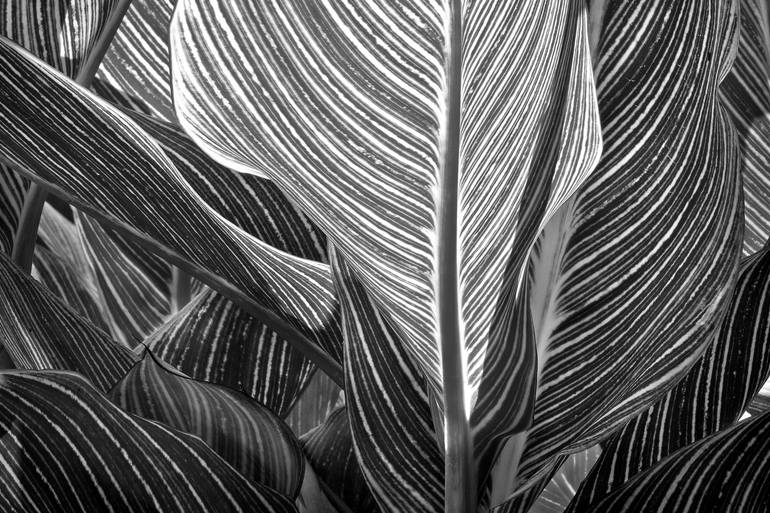 A multitude of striped canna leaves presented themselves. I knew there were pictures "in there". This is one that resulted from my effort. I is of a single leaf with the sun shining from the rear through it. It is printed on 22"X17" mat surface fine art paper with archival pigment inks. It is one...