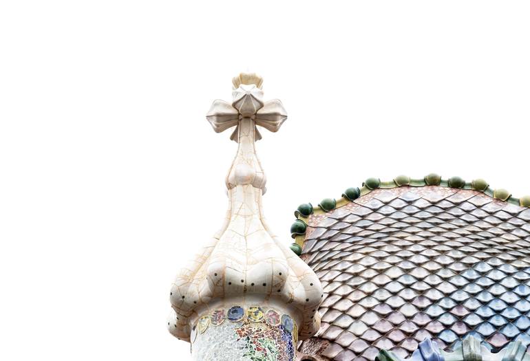 Shot in color detail on the facade of this historic building representing some character, animal or flower. Set at Eixample, Barcelona, Catalunya, Spain, Europe
