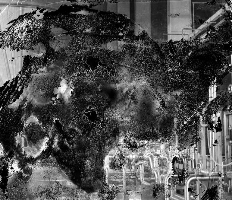 photographs of beer factory made on film, then soaked in beer sublimation print on canvas