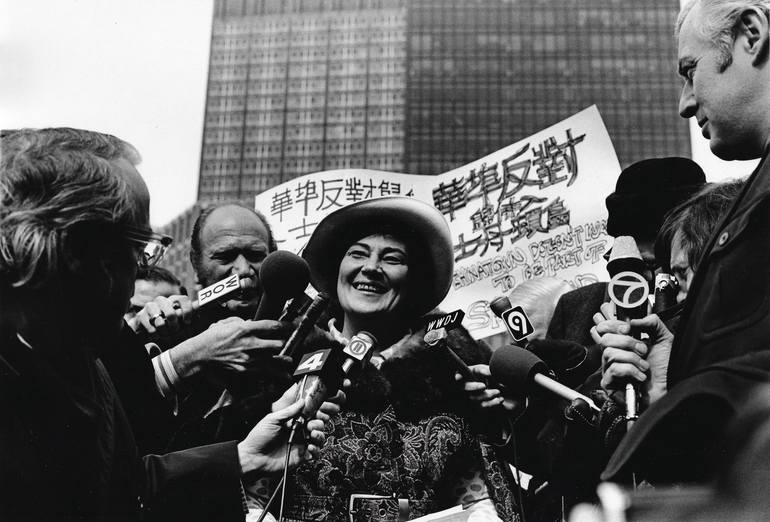This was the first time I saw Congresswoman Bella Abzug. I was so excited after worming my way through the male TV reporters legs,kneeling so a s not to get in their way, I dropped my lens at her feet....This image became her campaign poster for her winning campaign for US House of Representatives t...