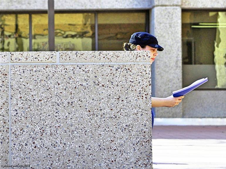 I was struck by the woman reading and the reflections in the windows behind the wall looking emotional behind the concrete. A private read the woman is having.