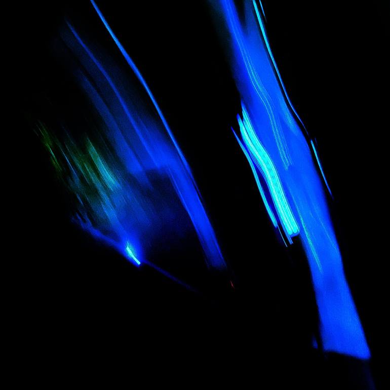 I took this picture by chance, but it surprised me with its beauty and mystery. I was photographing in a dangerous place, where there are many robberies and I was on a bike, and when I clicked, I moved the phone unintentionally. The result was this abstract image of blue and green rays of light on a...