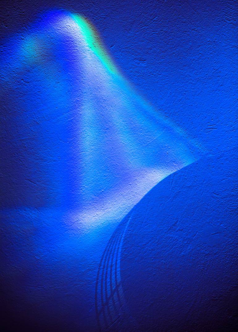 A vibrant spectrum of colors, including rich blues and subtle greens, shimmers across a textured surface. The interplay of light creates a luminous, otherworldly atmosphere. For sale as Limited-Edition of 30 Fine art prints on Metal H 75 x W 53.5cm $ 700 - plus shipping. All limited-edition Metal...