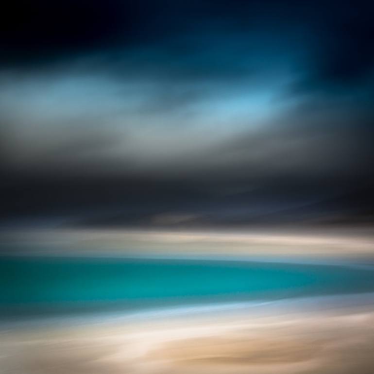 Oversized teal abstract abstract seascape - 58 x 58 inches image size plus 1 inch white border for handling for a total size of 60 x 60 inches. Title: Blue Rain Over Harris From my latest trip to the Isle of Harris in November 2022. The late season light and rain allowed me to capture some amazing...