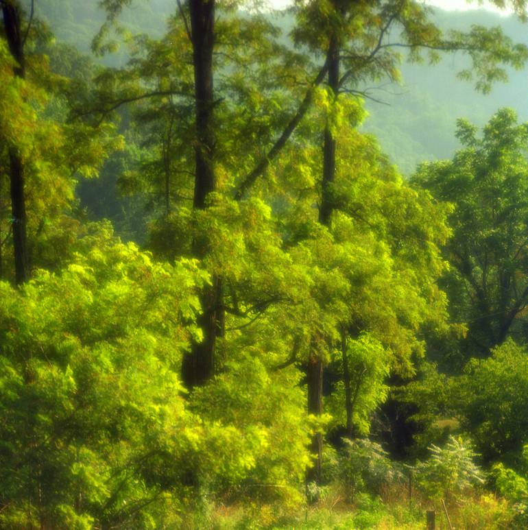 It's the summer of 2000 and I find myself living in this rain forest called the Blue Ridge Mtns. It rains every afternoon and the air is sultry and clean. The locust trees dance in warm breeze. It is a lush landscape which I hope the viewer can feel. The limited edition prints are on Canson Infinity...