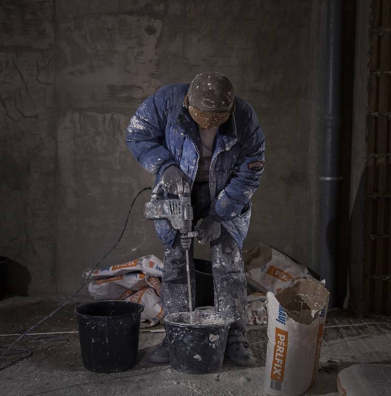 This photograph is part of my visual research on the subject of "Double exporsure of the Working Class - Soviet and Modern Era". It was made on a construction site, in a totaly documentary authenthic method. No posing, no directions or influence. That was part of my key and goal as a style aproach....