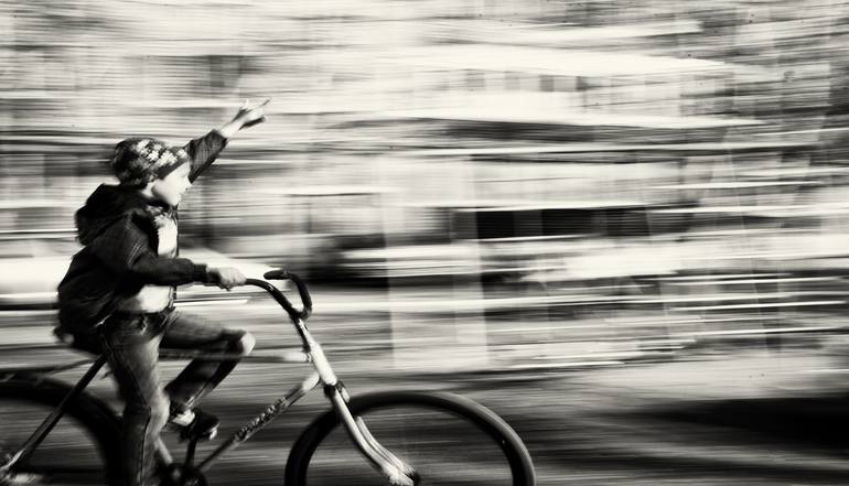 Saw this young kid as free as a bird giving it all on his bike as he rode around the block time after time