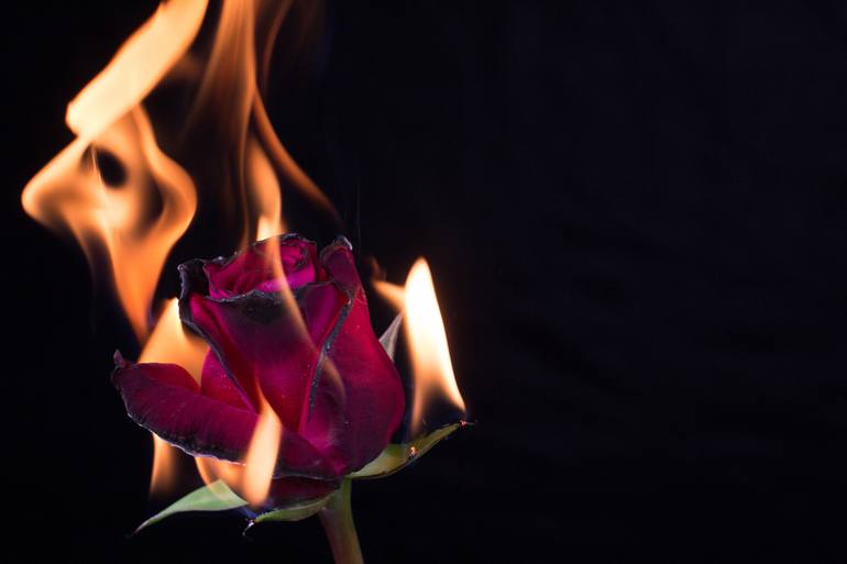 Burning blooming blossom Flowers Rose on Fire in love Valentine card Slow Motion