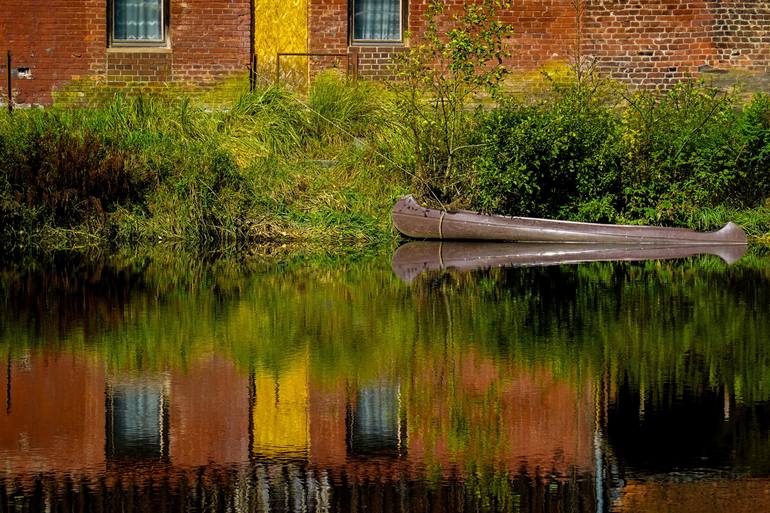 Original Artwork (Limited Edition): The motif is printed on Hahnemühle fine art baryta 325g paper, motif size 20 x 30 cm, white border 5 cm, outer size 30 x 40 cm, signed and artist stamp on the back. This tranquil scene shows the riverside in Teisnach, located in the Bavarian Forest Nature Park on...