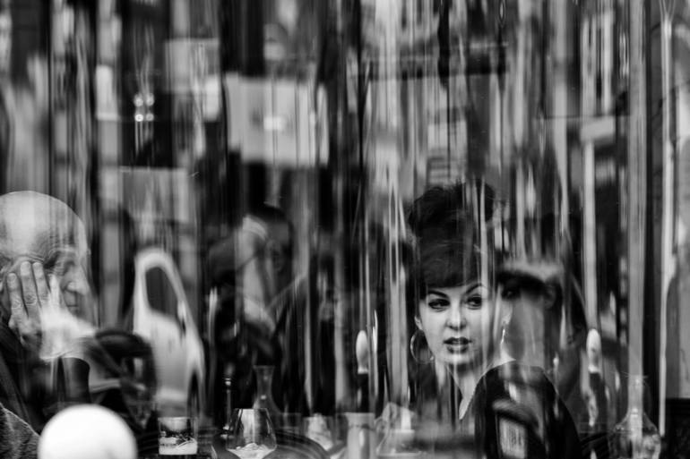 A rainy day in Paris. Passing in front of a bistro. The photograph is printed on Hahnemühle Fine Art Pearl paper 285 gr. and provided with certificate and hologram of authenticity signed by the Author.