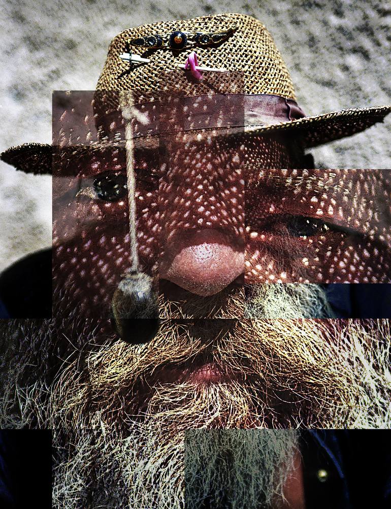 Cubist composition with salient features of a captured face.