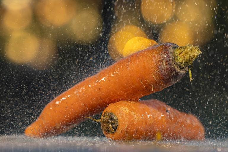 I began this series of fruits and vegetables to accentuate their beauty and mystery while highlighting water as a universal life force.