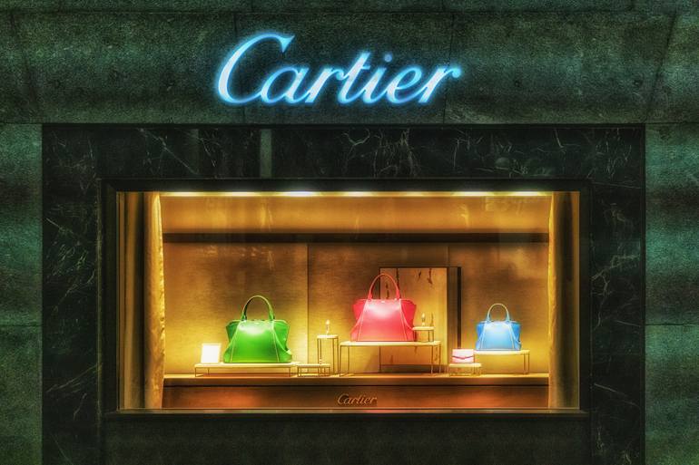Visiting Switzerland - after an India trip... Cartier windows in a wonderful City in Switzerland. Living in a box? Fine Art Digital Print - signed by artist on the back with details of art work taken in Summer 2019 in Switzerland.
