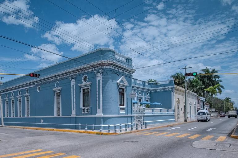 Casa azul is finest example of colonial architecture of city of Merida in Mexico