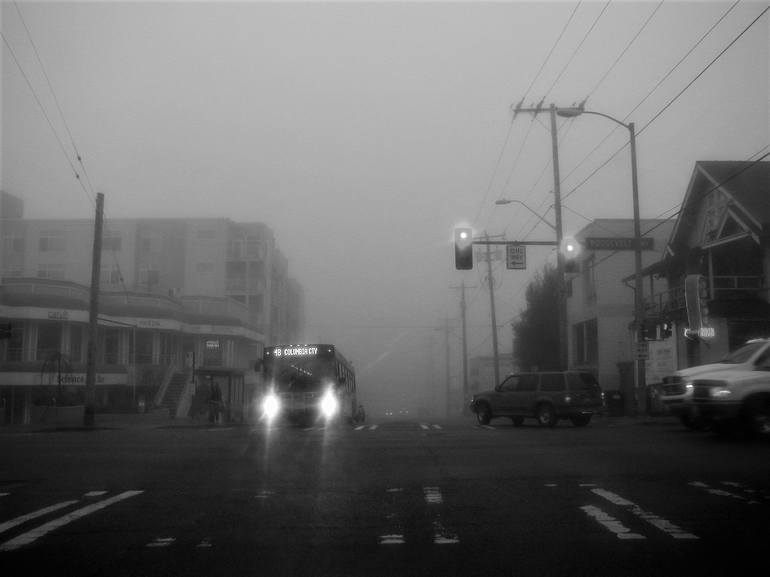 Part of a series of urban landscapes. The city Seattle, hilltop view waiting in the dark for the bus.