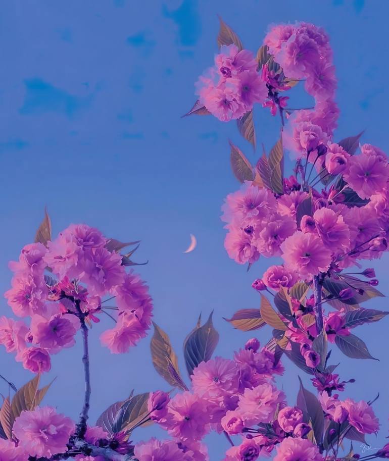 This is a futuristically shaded and contoured portrait of a blissful japanese flowering cherry taken in Somerville Assembly Row by the channel when the lighting was just right and then enhanced.
