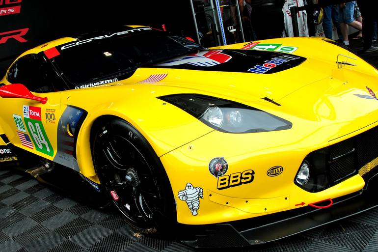 Chevrolet Corvette C7.R no64 front side view on show at The 24 Hours of Le Mans endurance race 2018 in France photography by Andy Evans Photos Limited edition prints are processed using Hahnemuhle Baryta fine art paper. A bright white based, acid-free and lignin-free paper benefiting from a high-glo...