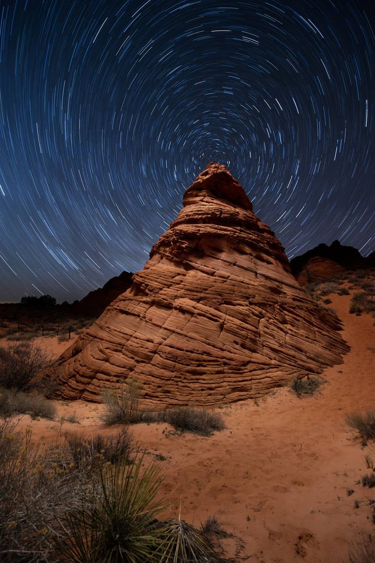 The stars circle around interesting formations in the Paw Hole area of the Arizona desert. All large prints are an edition of 3, and are available in 20x30, 32x48, 40x60 & 48x72 (or similar size depending on the format of capture). All images medium format film camera or D800, and prints provided ...