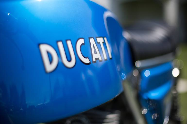 This is a Ducati 900 GTS Custom in Cobalt Blue. Shot at the Quail Motorcycle Gathering.