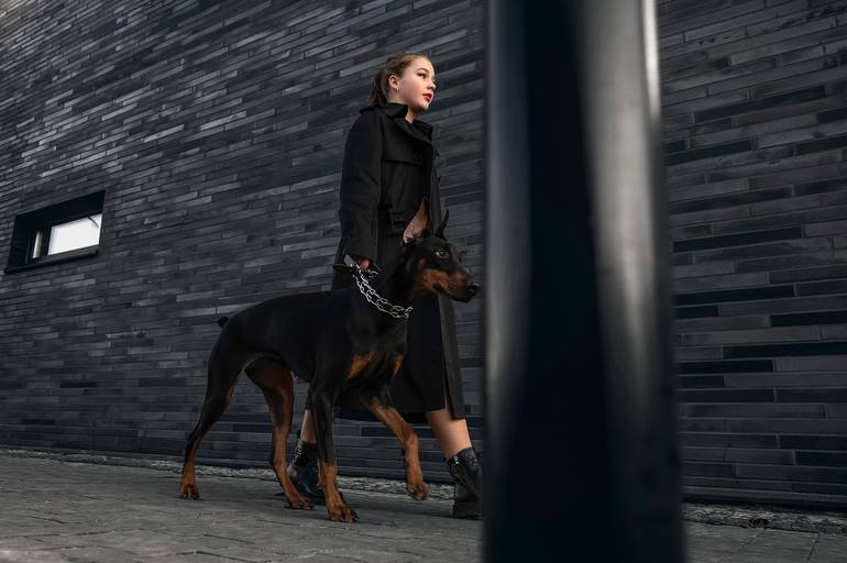 The idea for the frame came from the model. She wanted to show that a dog can be not only a friend, but also a protector. It was minus 5 outside, but Christina coped with her role .pictures