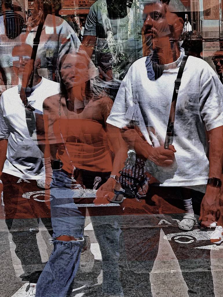 Barcelona digitally edited triple exposure street photography, made with the GNU Image Manipulation Program.