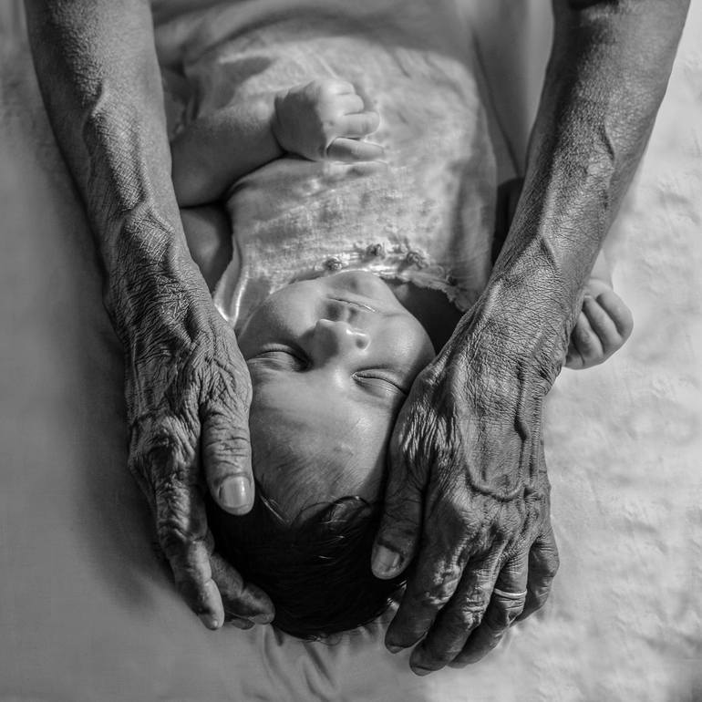 Consider this as fine art and documentary artwork. The story behind this art work - Only natural light is used in this photo. Old grandmother acting as a physiotherapist, is a custom that has been passed from generation to generation in Sri Lanka. when a newborn is at least one-month old I began. ma...