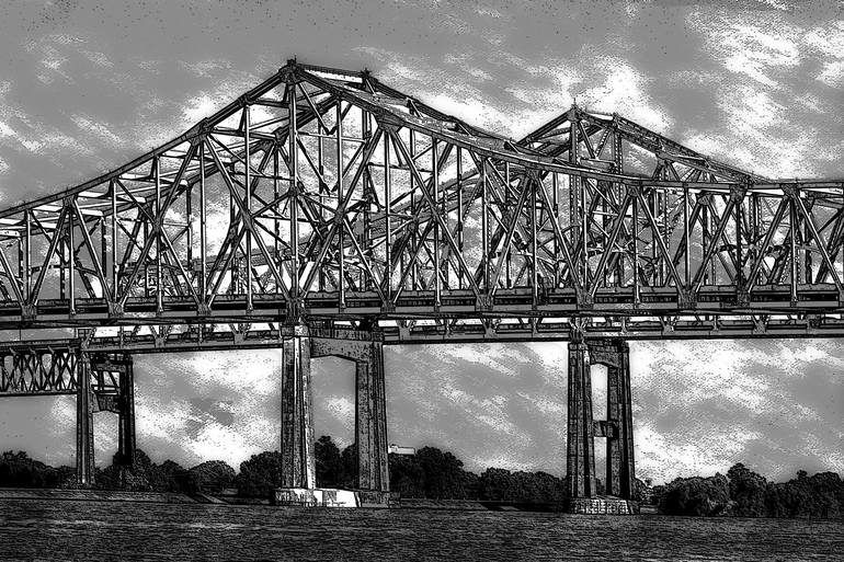 The iconic twin bridges over the Mississippi River in New Orleans is a sight to behold at anytime of day as the busy ship traffic passes under these majestic structures.