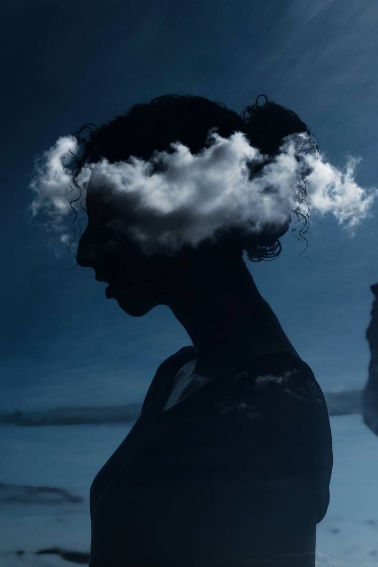 Superposition of two photos one on another. Crown of thorns from the clouds of fantasy in which our brain flies