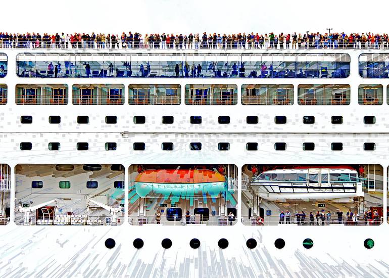 This captivating fine art photograph, "Cruise ship MSC Lirica," captures the essence of modern travel and adventure. Created through digital artistry from a real photograph, this piece is a celebration of photorealism. The artwork is meticulously crafted using a lightjet laser exposure on Archiv Ph...