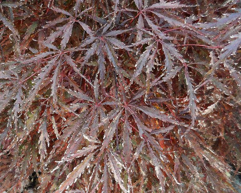 This cut leaf maple on my terrace shows fine weeping twigs in the winter months that bely the lushness of its lacy reddish leaves in the remainder of the year. The absolute riot of hundreds of serrated leaves in each image lend an abstraction when viewed from a distance. Closer in one can appreciate...
