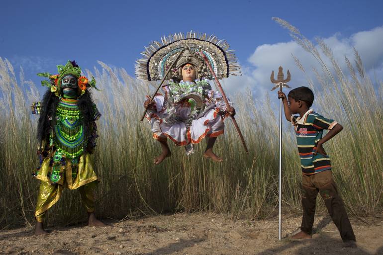 Chow is a tribal primitive dance form still existing in Purulia , Jharkhand and Odisha of India. It is an acrobatic form of dance performed by skilled artists. They wear colourful masks and dresses.