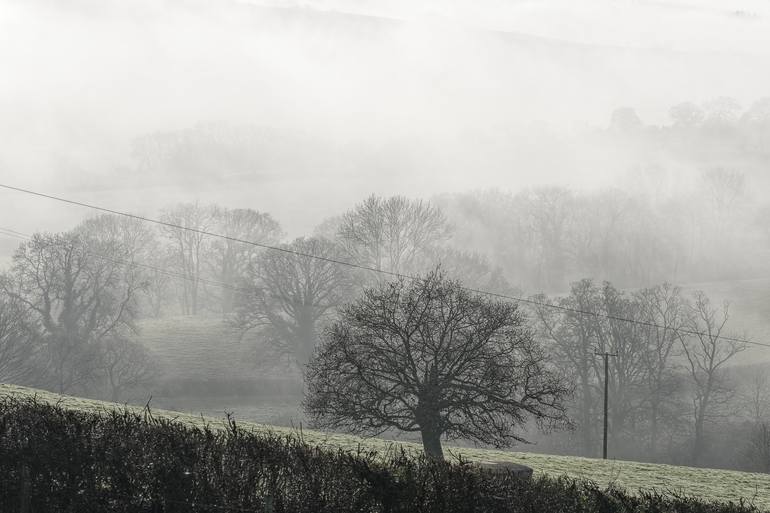 Devon Fog XXXIV Part of a series titled: Devon Fog. Devon Fog - A series exploring the ethereal beauty of the English south western countryside when fog rolls across the river valley slopes and combes. Walking these areas of outstanding natural beauty in this weather is a unique experience and mo...