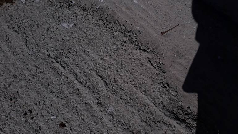 Dirty earth. Abstract photo. Print. Color Manipulated Photo - Limited Edition of 2 The gray planet. There is asphalt, concrete, mud all around us. Only man is to blame for this. A random photo taken with a mobile phone. A shadow on the asphalt in the shape of a human face (the shadow of a trash can ...