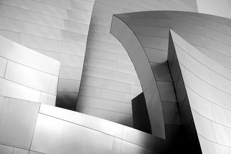 Modern minimalism image of the iconic Disney Hall in Los Angeles California. Designed by Frank Gehry who received awards and praise. Limited edition fine art print on heavy matte paper, signed el verso and numbered by the artists. It is included in the series entitled "Into The Light". Please se...