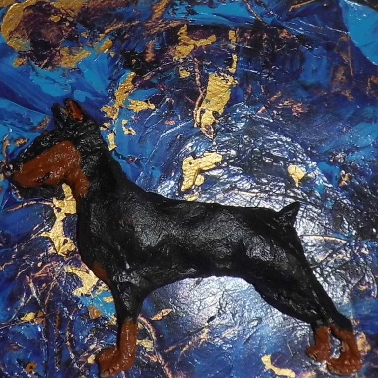 This is a Photograph of a Doberman Pinscher Sculpture Acrylic Painting I created. The original is for sale on my site also. Get your prints of this Pup here with or without a Frame. Different color Frames to choose from.