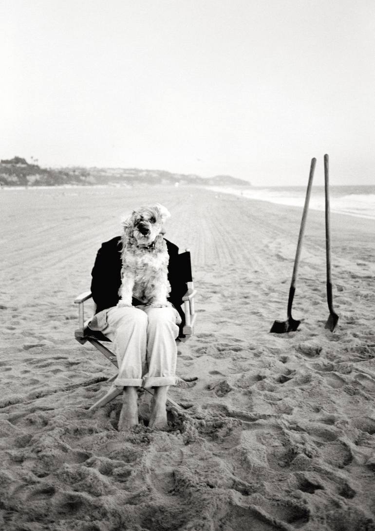 Dog on chair, Malibu I was doing a photoshoot on the beach in Malibu. My producer’s girlfriend showed up with her dog. We were building a sand castle for the shoot (hence the shovels). I looked up and did a double take, ripped out my camera and caught the merge of human and dog. I think I was ins...