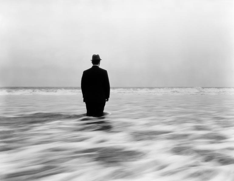 Description: Matthew Bauer knee deep in the Pacific Ocean.Medium: Silver Gelatin PrintYear Created: 1993