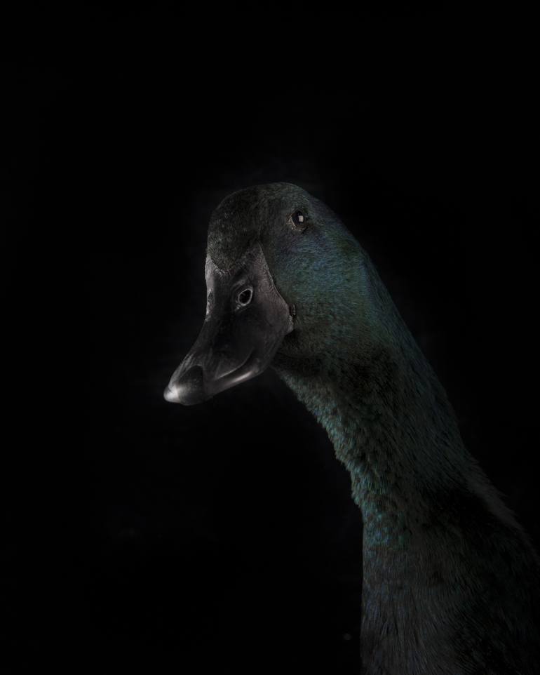 An East Indian Drake photographed as part of a wider series of portraits of animals and birds.