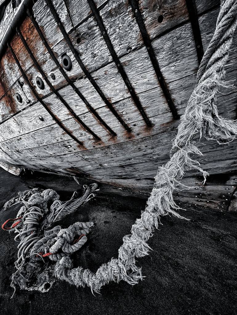 This is a different take on another of my images , Death is rarely a colourful affair , Its probably a victorian influence , but dark muted colours are the fair of the day .This trawler has in effect died , just draped in the beach occasionally being cannibalised for spares , and as the changed titl...