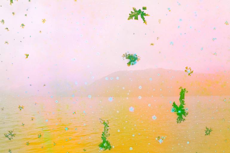 How do I do this? Minute amounts of water, windfall samples - organic and mineral - are collected from the very landscape depicted within each picture - and chemically bonded with the film over 12 months. . The result: A nature-disrupted film process that creates unedited images that are inbetween...